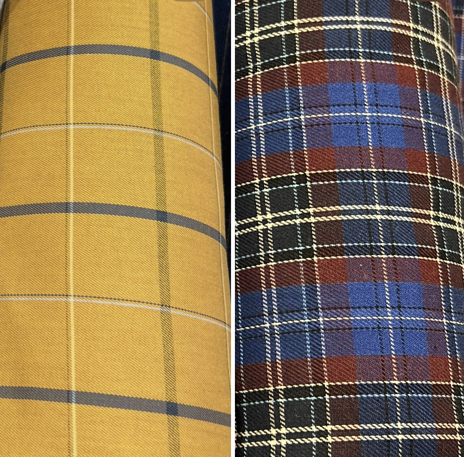 חולצה מכופתרת משבצות חרדל כחול עם כיווץ בשרוול - גזרה רחבה שניתן לכווץ להיקף המותן - One Size